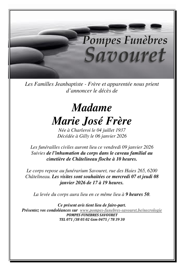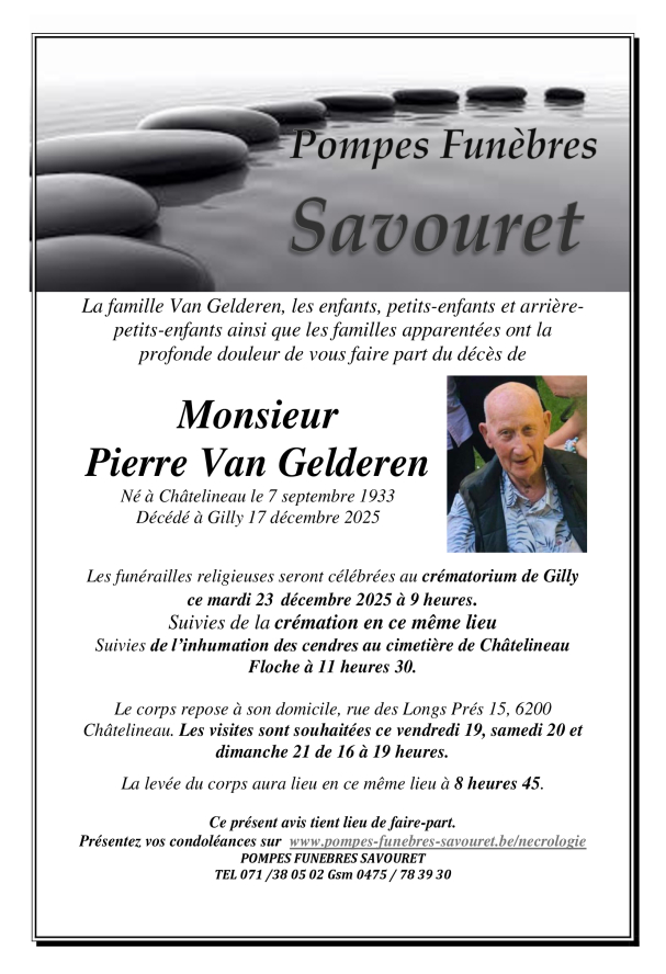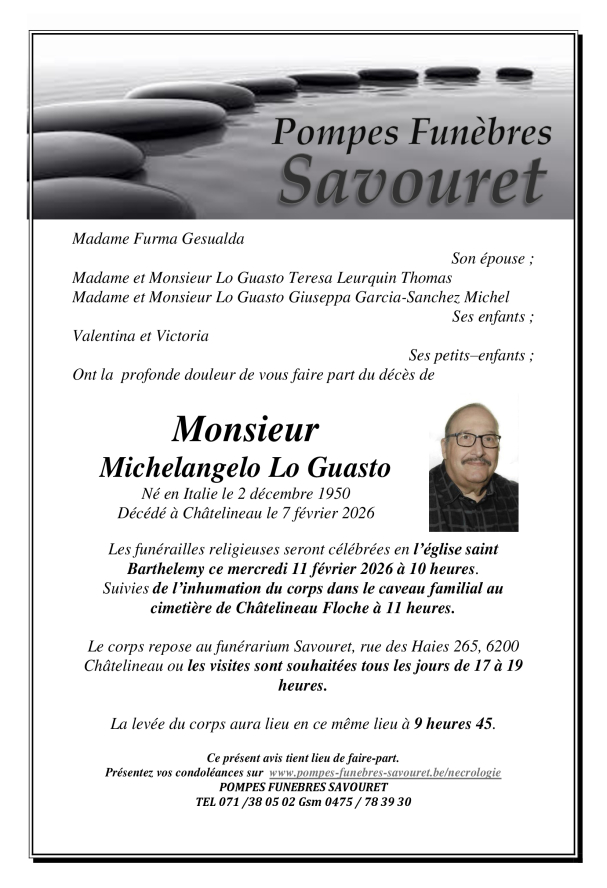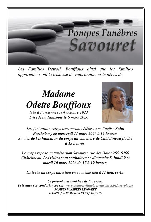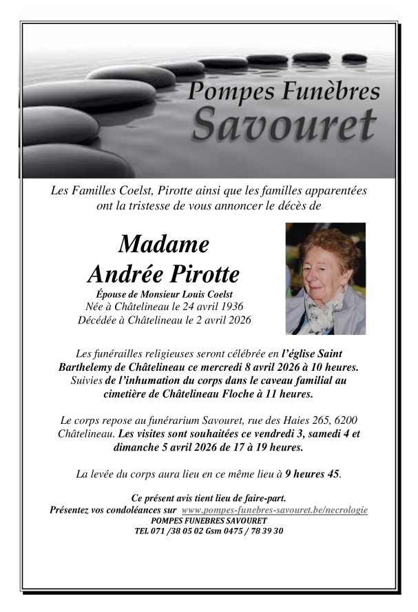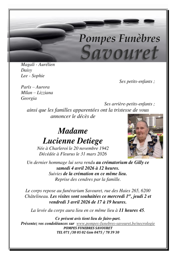 Si vous souhaitez présenter vos condoléances à la famille d'un défunt, vous pouvez laisser un commentaire via le formulaire en bas de page et nous lui transmettrons votre message.